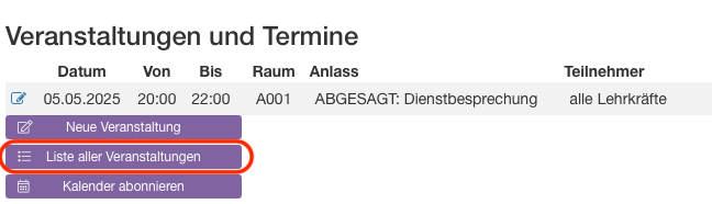 Angelegte Termine erscheinen automatisch in den abonnierten Kalendern.